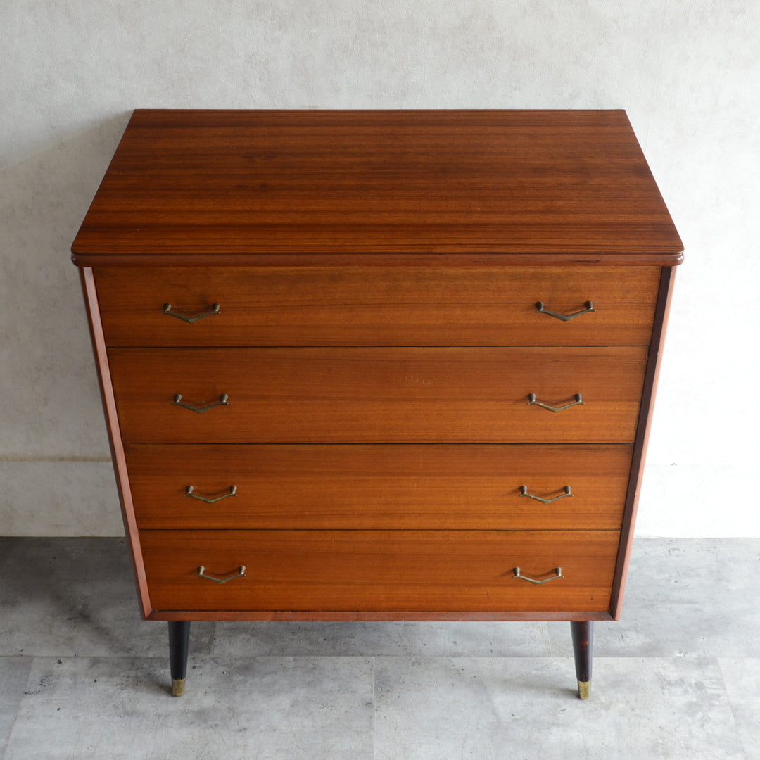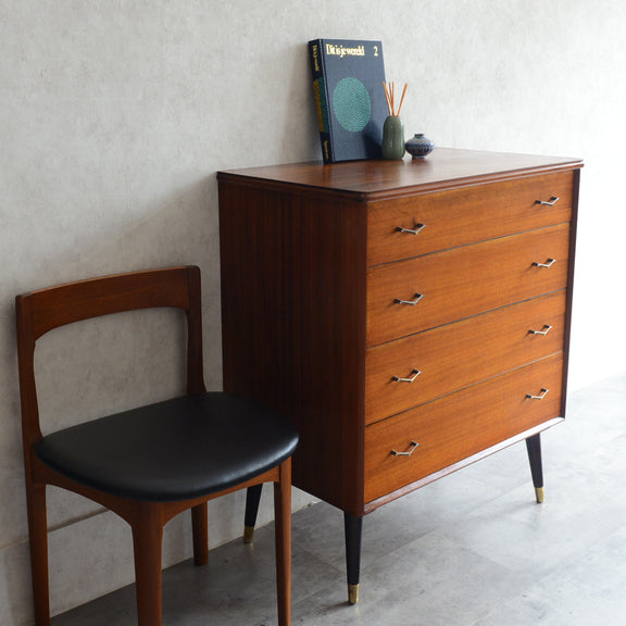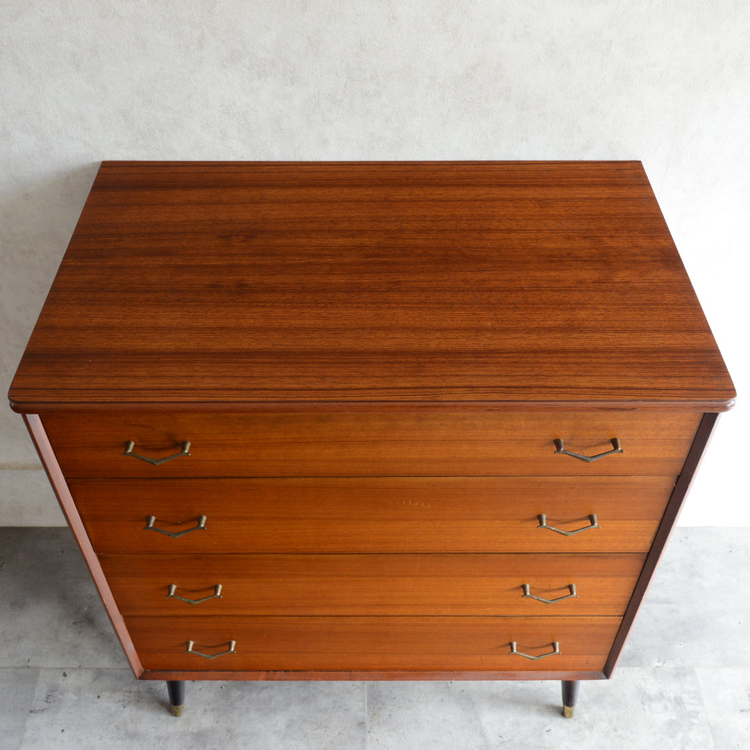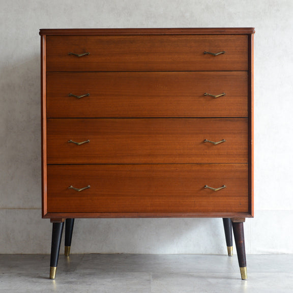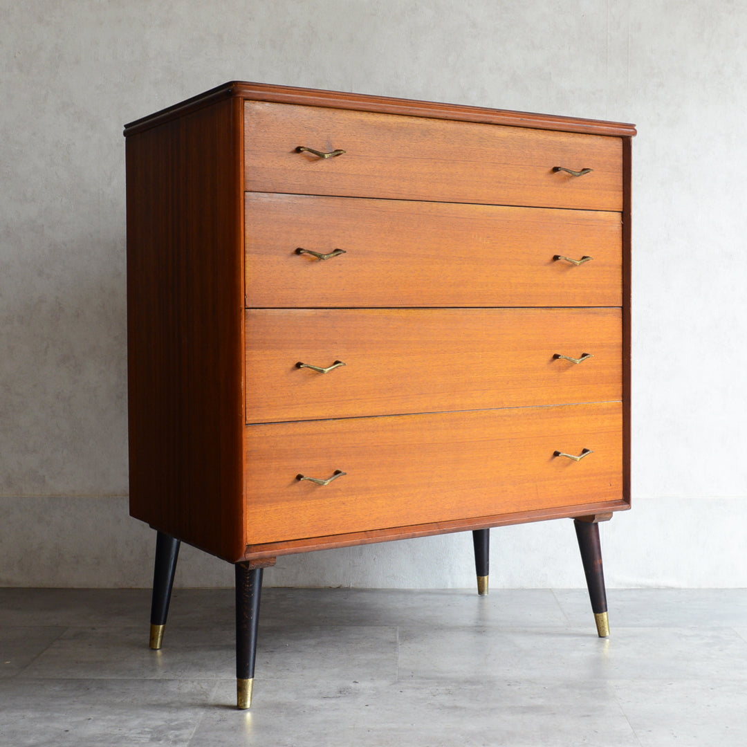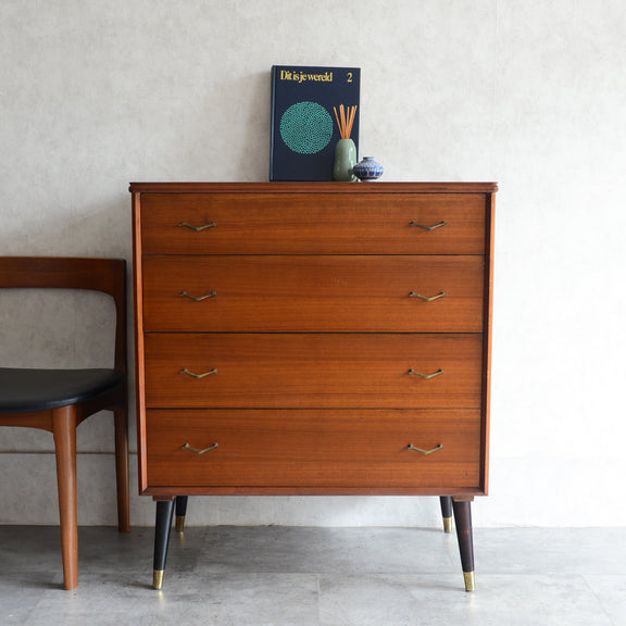 ブラックの脚部、真鍮の把手と脚先がスタイリッシュな4段チェスト