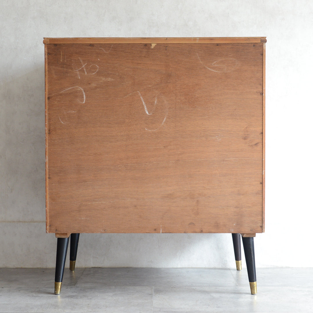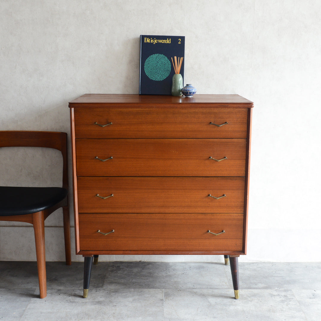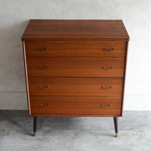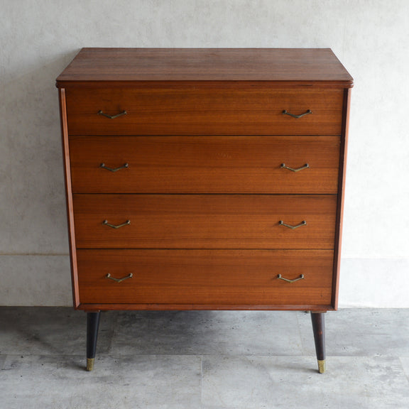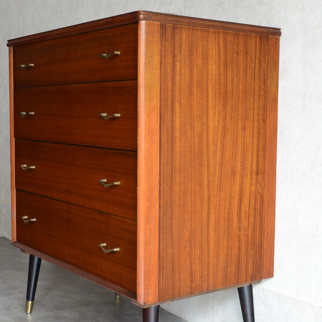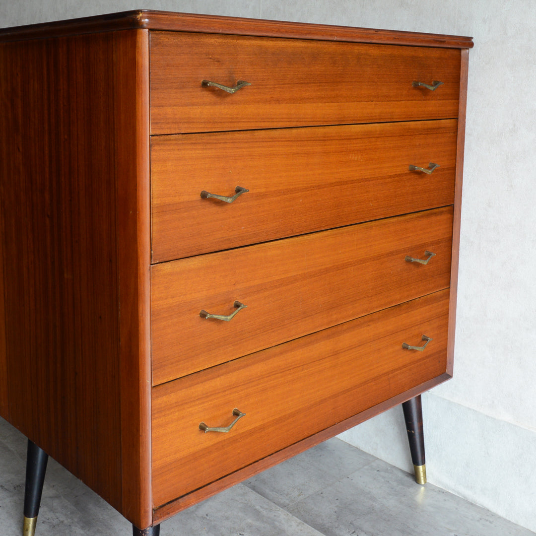 ブラックの脚部、真鍮の把手と脚先がスタイリッシュな4段チェスト