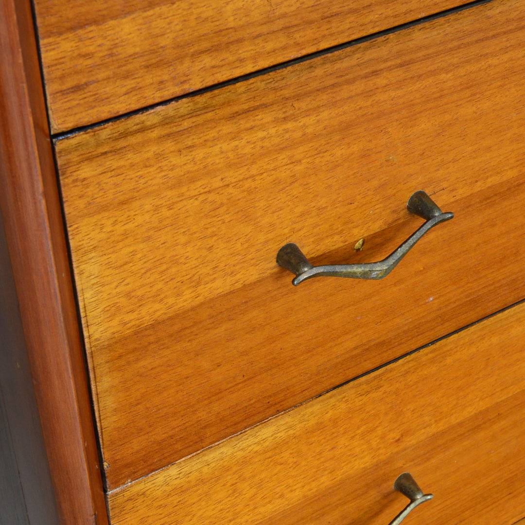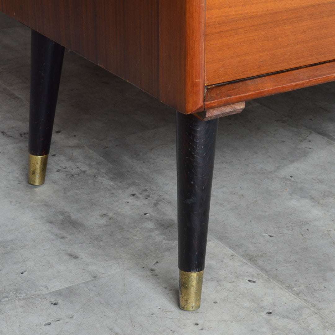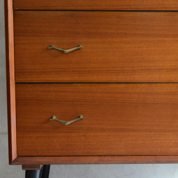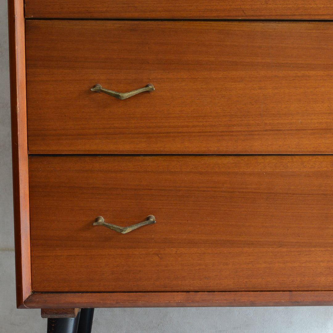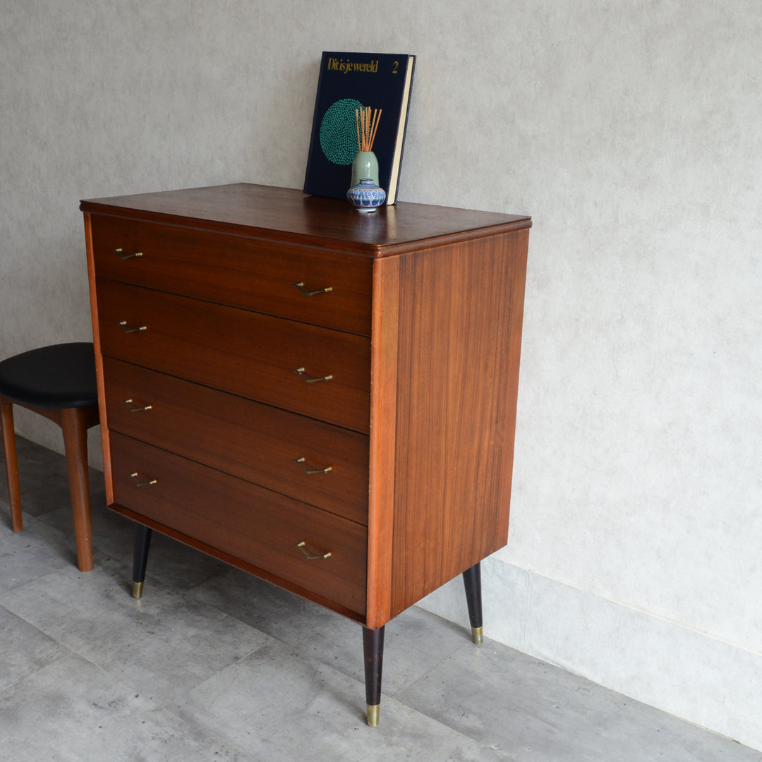 ブラックの脚部、真鍮の把手と脚先がスタイリッシュな4段チェスト