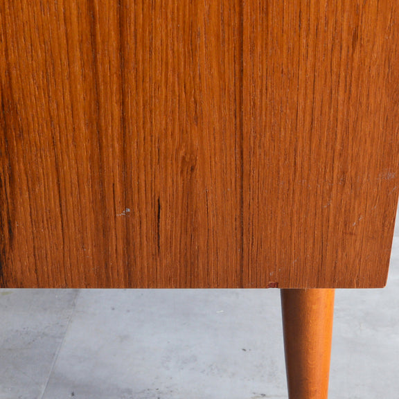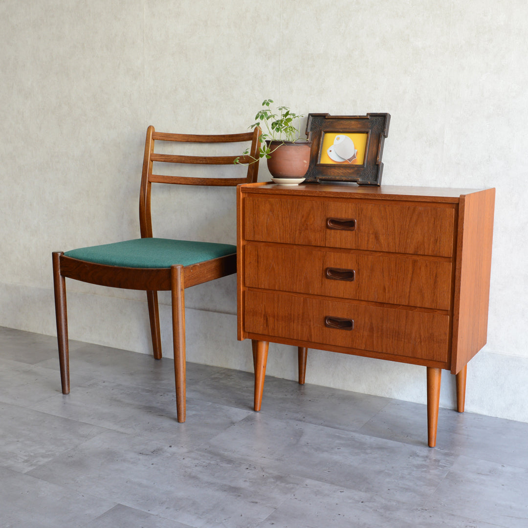 北欧らしいすらりとした丸脚と、チークの杢目がシンプルで落ち着いた佇まいです。