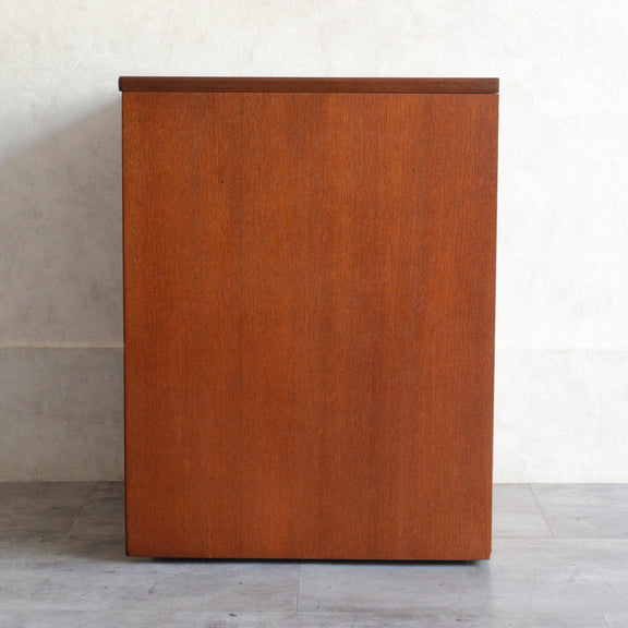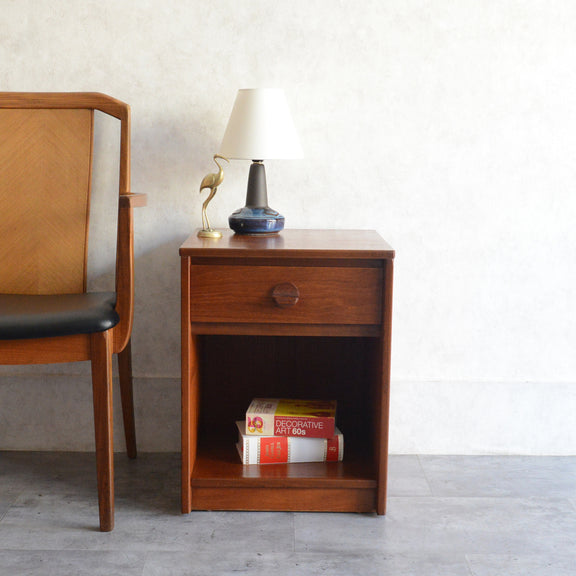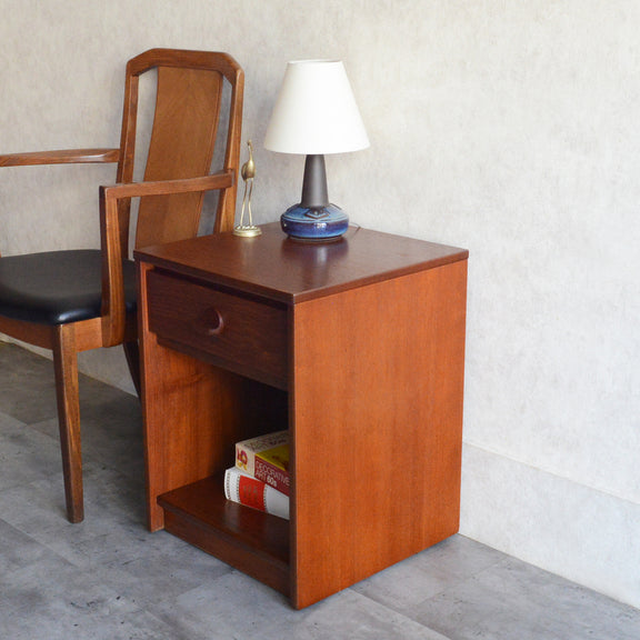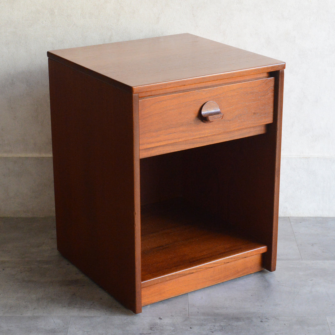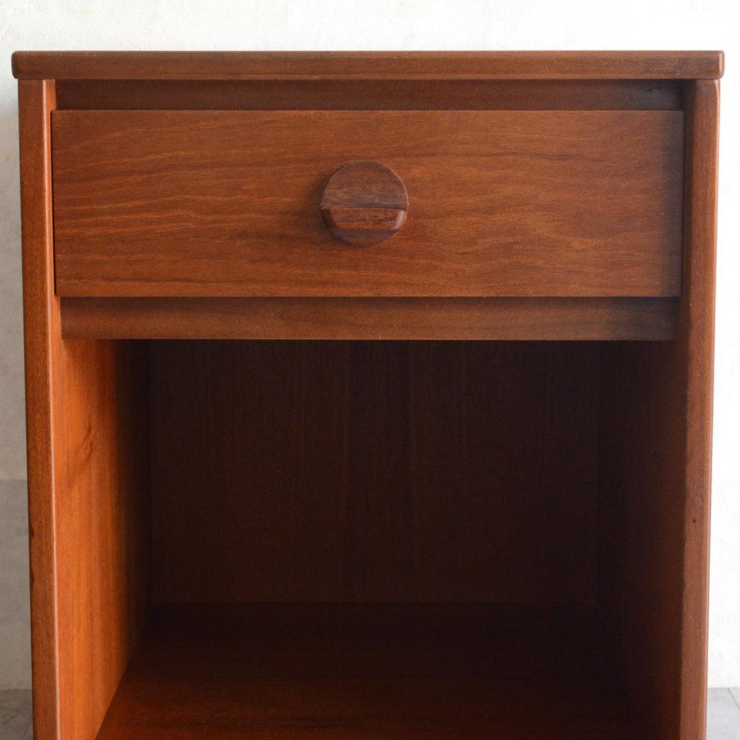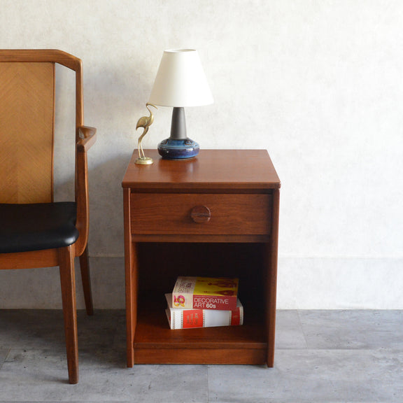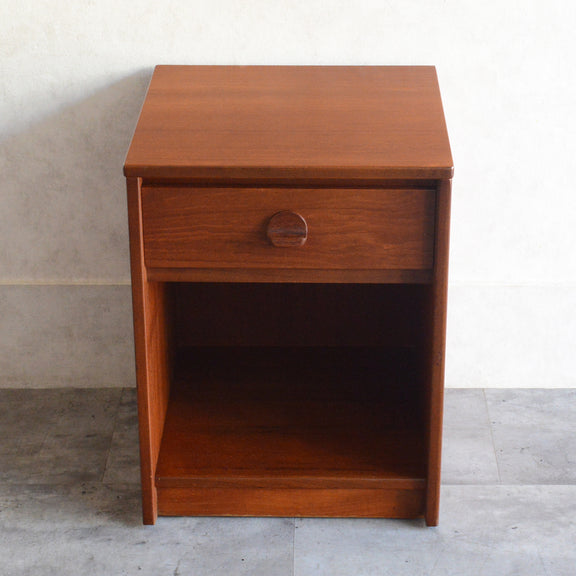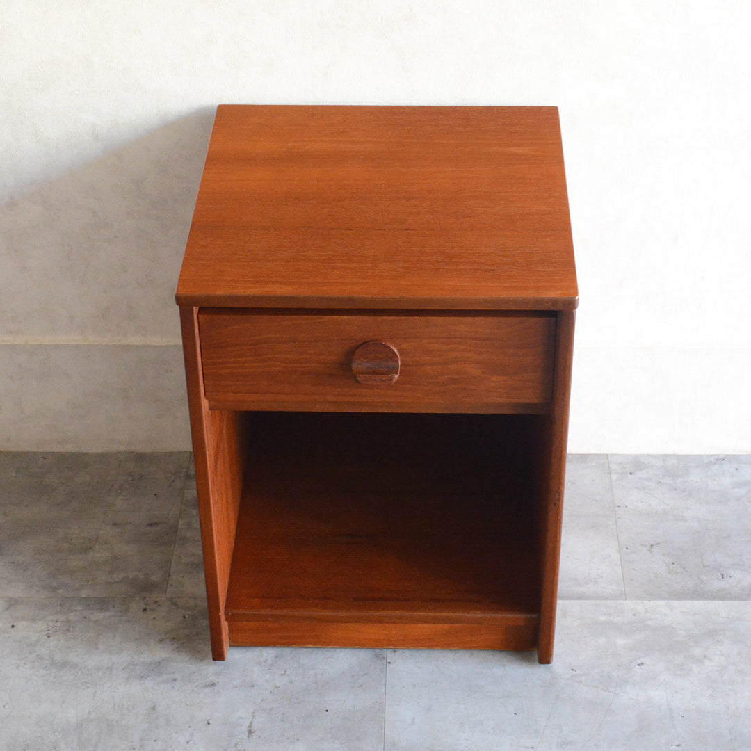 イギリスヴィンテージ シンプルなデザインですが、引き出しの取っ手がチークを彫り出したSTAGらしい形をしています。 リビングでもベッドサイドでも使い勝手の良いサイズです。
