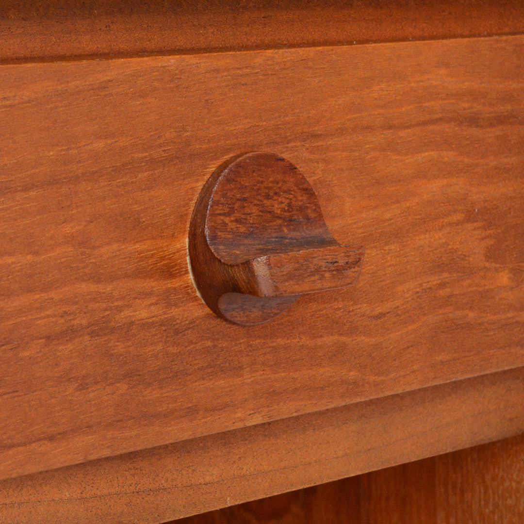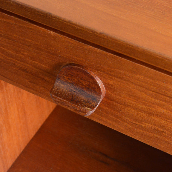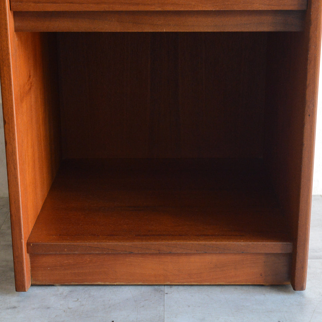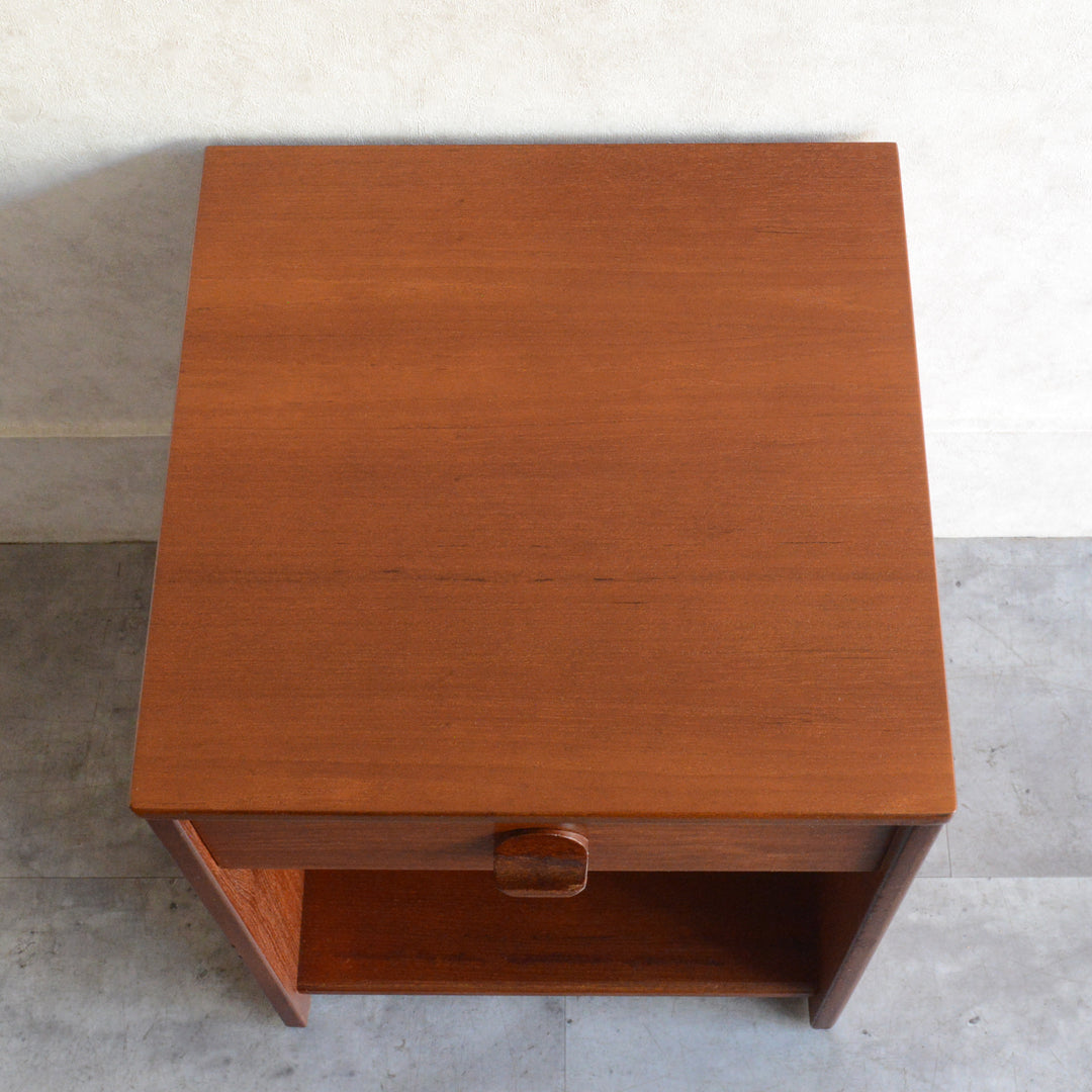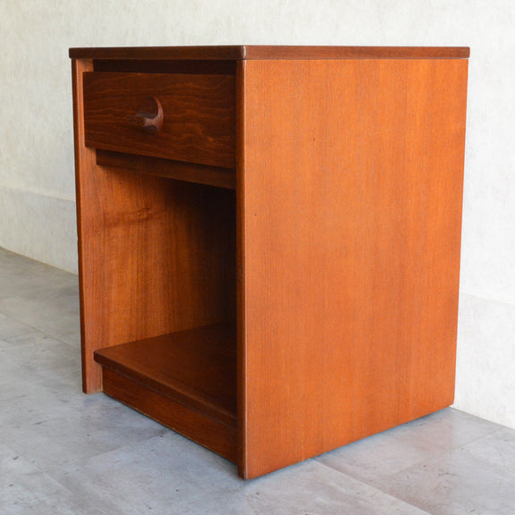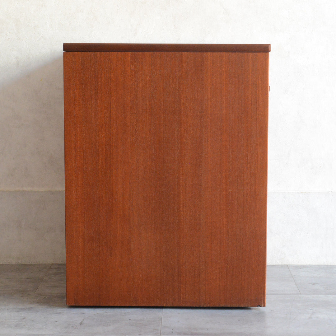 イギリスヴィンテージ シンプルなデザインですが、引き出しの取っ手がチークを彫り出したSTAGらしい形をしています。 リビングでもベッドサイドでも使い勝手の良いサイズです。