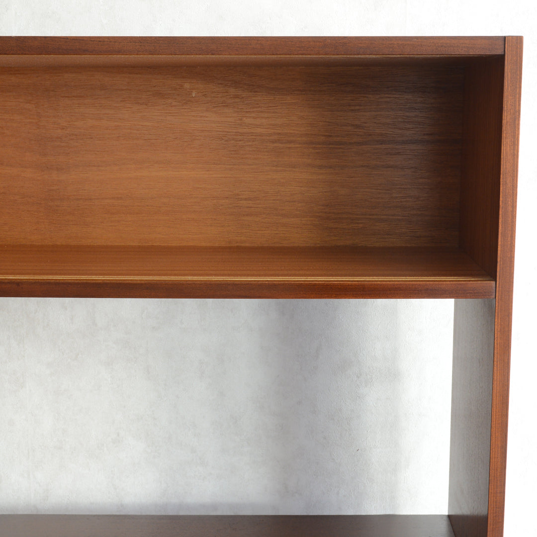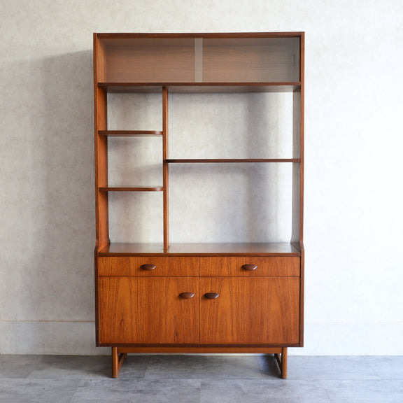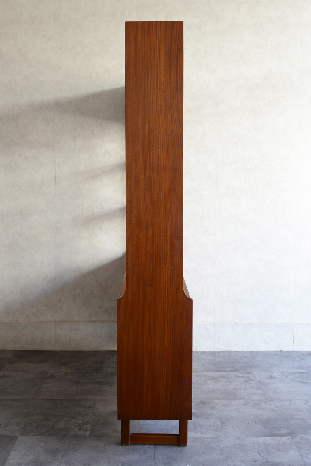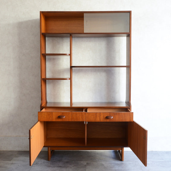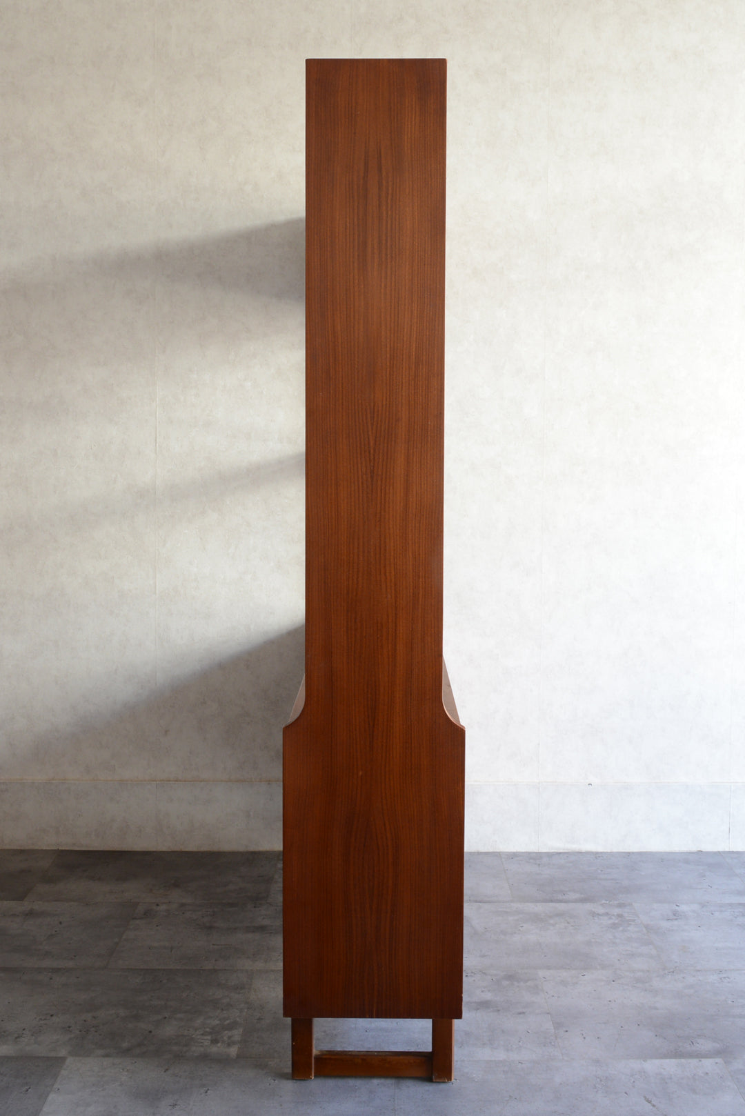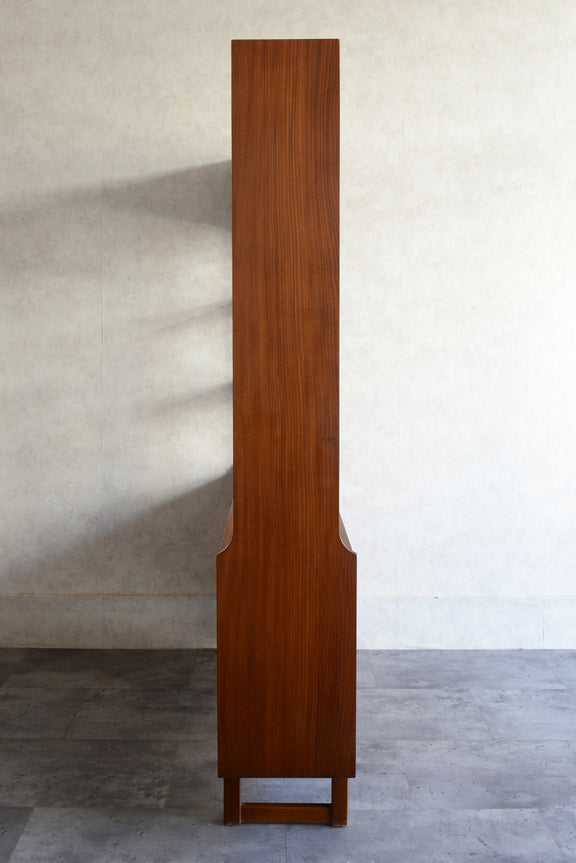 背板が無いので抜け感があり、ガラス扉内と棚には好きなアートや雑貨が美しく映えますし、抽斗と下部のチークの扉内には、生活感のある日用品や書類(A4サイズ収納可能)をすっきりと収納できます。